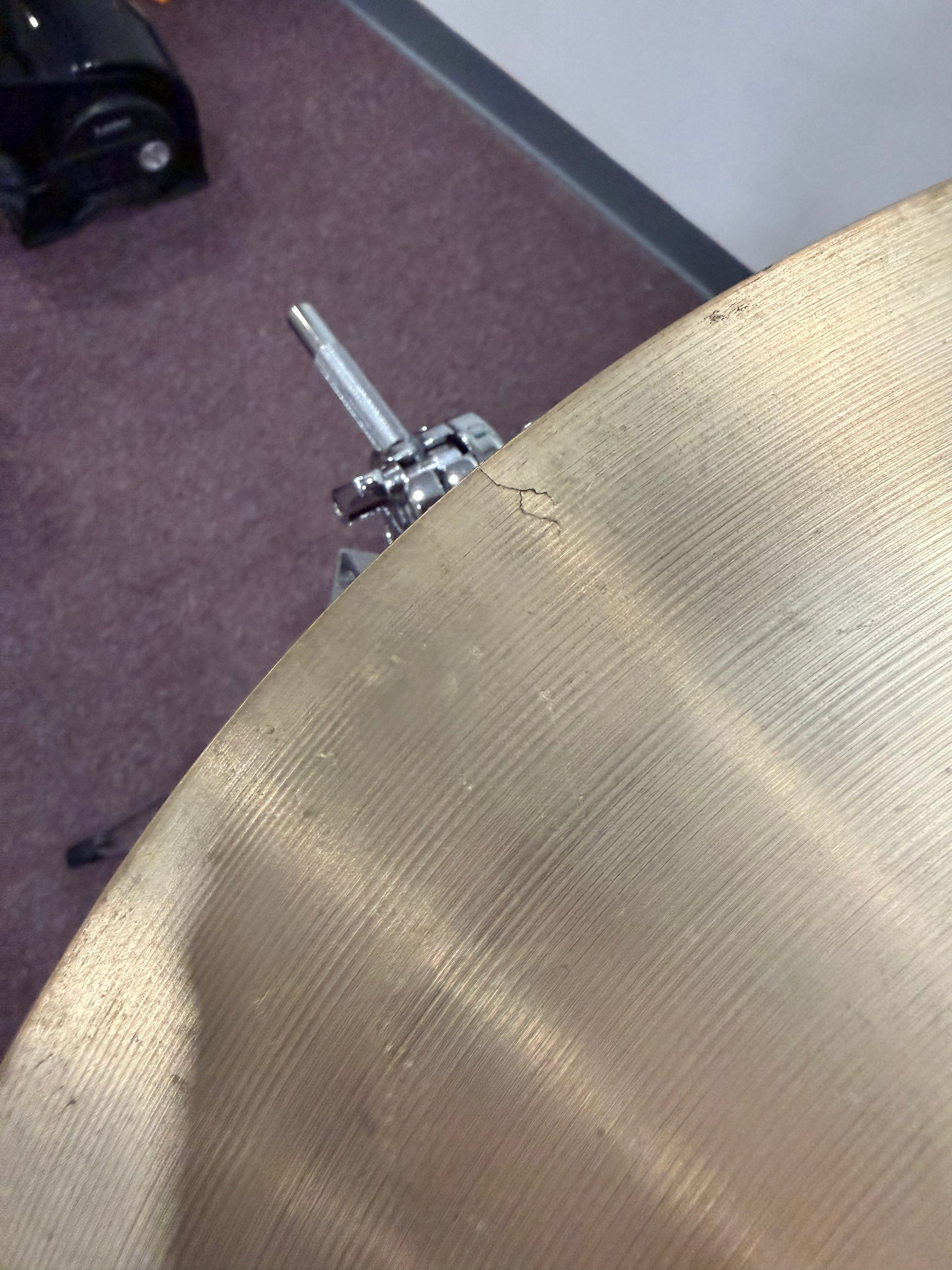 Crack on the bow of the cymbal